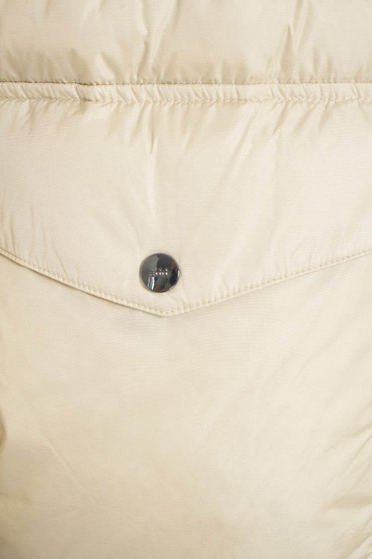 Elevate your cold-weather wardrobe with this ADD long quilted down coat, a perfect blend of style and functionality. Crafted from high-quality materials, it features a padded design with horizontal stitching, ensuring optimal warmth. The non-removable hood with drawstring adds a practical touch, while the dual-slider full-length zipper provides ease of wear. Flap pockets with snap buttons and a zippered chest pocket enhance practicality, making this coat ideal for urban adventures and outdoor excursions.