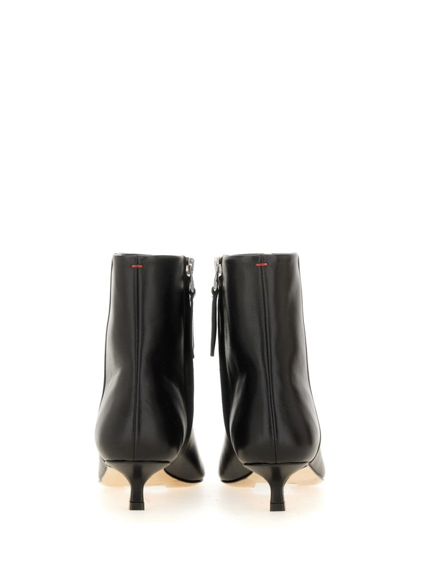 Ankle boots by Aeydē showcase minimalist elegance with a chic pointed toe and a sophisticated silhouette. A convenient side zipper allows for effortless wear, making these boots a timeless addition to any wardrobe.