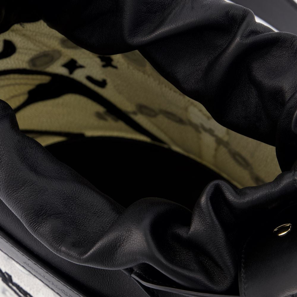 This bucket bag from Alexander McQueen features a unique, structured shape made from smooth calfskin. The soft gathered edge enhances its refined look, and the adjustable strap allows for versatile styling. Perfect for modern casual outings.