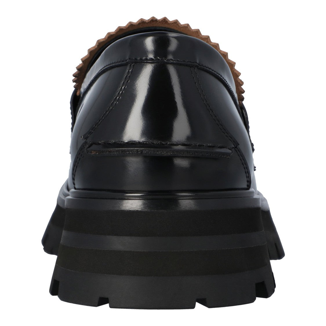 Refined loafers from Alexander McQueen are crafted from luxurious brushed calfskin, featuring a rounded toe and a distinctive metal logo button at the front. An oversized flared rubber sole adds a contemporary twist to this classic silhouette. Ideal for casual outings or sophisticated affairs, these shoes embody a daring yet elegant style.
