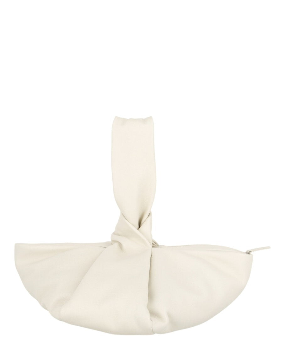 Ambush introduces the Twist Top Handle Bag, featuring a sleek lambskin leather exterior and a unique twisted handle design. With a zip closure and an interior zip pocket, it combines practicality and elegance. Silver-tone hardware adds charm, while the foldable loop handle allows for versatile styling. This exquisite accessory, made in Italy, enhances modern sophistication and elevates any outfit.