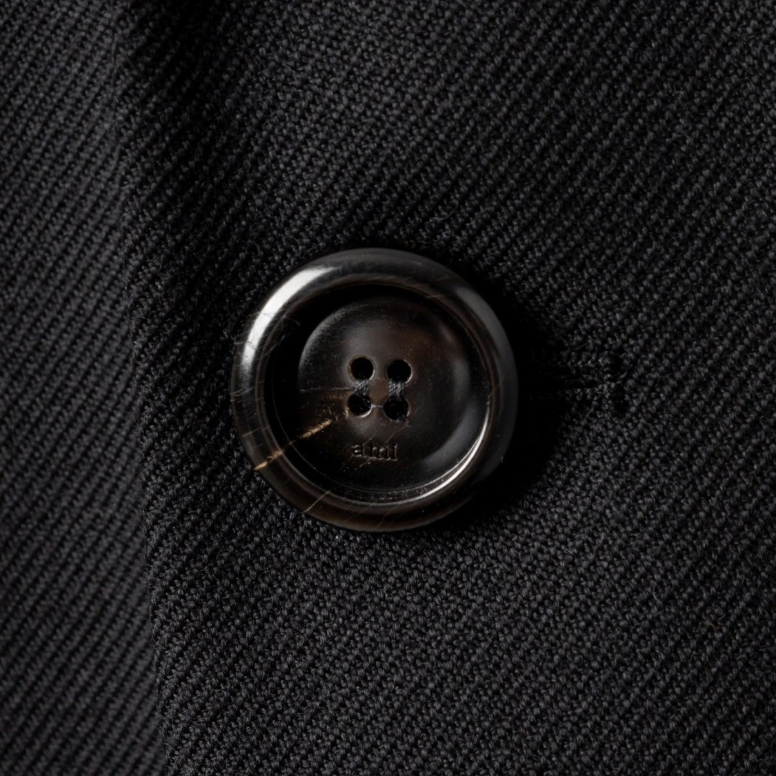 Ami's long tailored coat epitomizes refined elegance, featuring a classic lapel collar and a sleek design. The double-button front closure and four-button cuffs enhance its minimalist aesthetic while the fully lined interior ensures comfort. Crafted from textured 100% virgin wool, it offers a sophisticated silhouette perfect for any occasion.