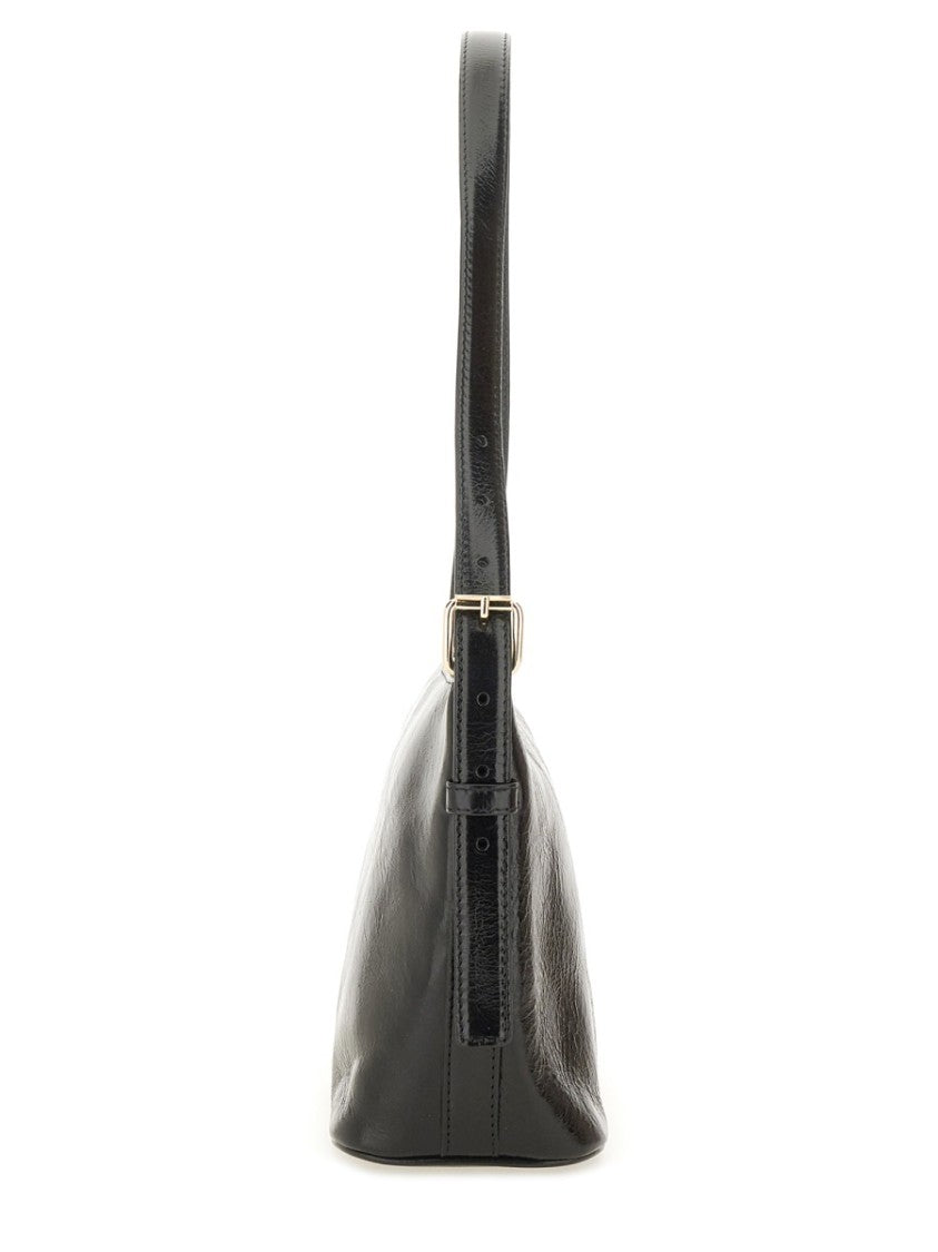 This refined shoulder bag from A.P.C. embodies contemporary craftsmanship through its glossy cowhide leather with a subtle crinkled texture. The design features a practical zip closure, an adjustable shoulder strap for versatility, and discreet gold-tone accents enhancing its minimalist allure. Perfect for the discerning individual who values both style and practicality.