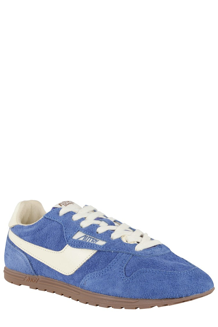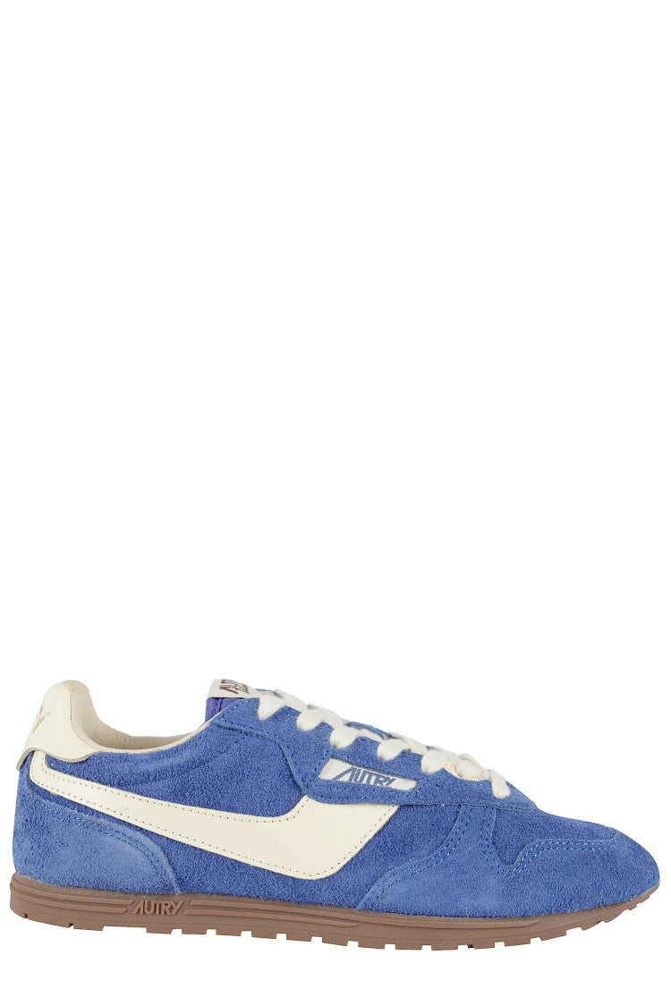 Explore the effortless charm of the Windspin Low sneakers by Autry. These sneakers showcase a low profile design featuring a used-effect suede upper paired with smooth leather side inserts. The elegant almond toe silhouette is complemented by a contrasting leather heel tab and a cotton lace closure, ensuring a stylish finish. Designed for both durability and comfort, the rubber sole makes them perfect for casual outings or sporty adventures.