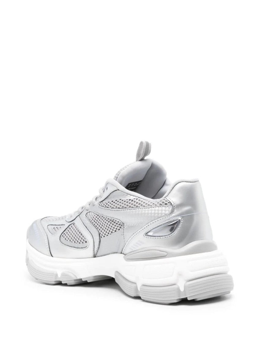 Elevate your activewear collection with the Axel Arigato Marathon neo runner trainers. These chic, sporty shoes feature a striking combination of shiny silver leather and breathable mesh, offering a contemporary aesthetic and functional performance. The unique textured finish enhances their appeal, while the chunky white sole provides both style and comfort. Designed for a secure fit, these trainers are perfect for those who appreciate modern design and high-quality craftsmanship.