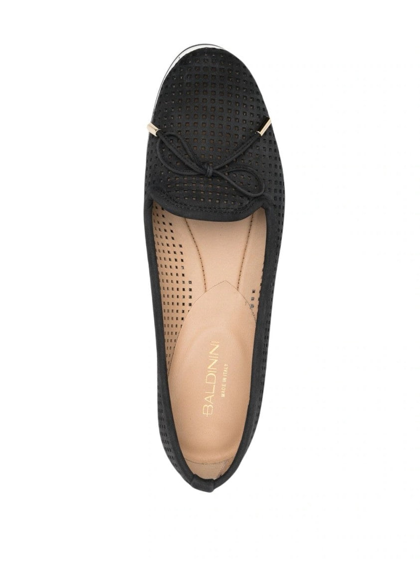 Baldinini presents a pair of elegant ballerinas that redefine comfort and sophistication. Featuring a closed design with a sleek silhouette, these shoes are crafted from soft cow leather, showcasing a stylish perforated upper that enhances breathability. The resilient rubber sole ensures durability and excellent grip, making them an effortless choice for everyday elegance.