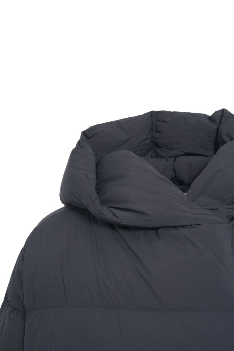 This padded coat from Blauer combines warmth and elegance, featuring a voluminous silhouette with horizontal quilting. A non-removable hood adds comfort, while long sleeves and a slightly rounded hem contribute to its sophisticated look.