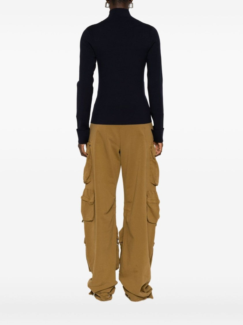 The Blugirl fitted sweater embodies effortless style, made from a premium blend of materials. The high neckline and long sleeves contribute to a sophisticated silhouette, while the textured diamond pattern with subtle perforations adds visual interest. This piece serves as a versatile addition to any wardrobe, ideal for casual outings or layered looks.