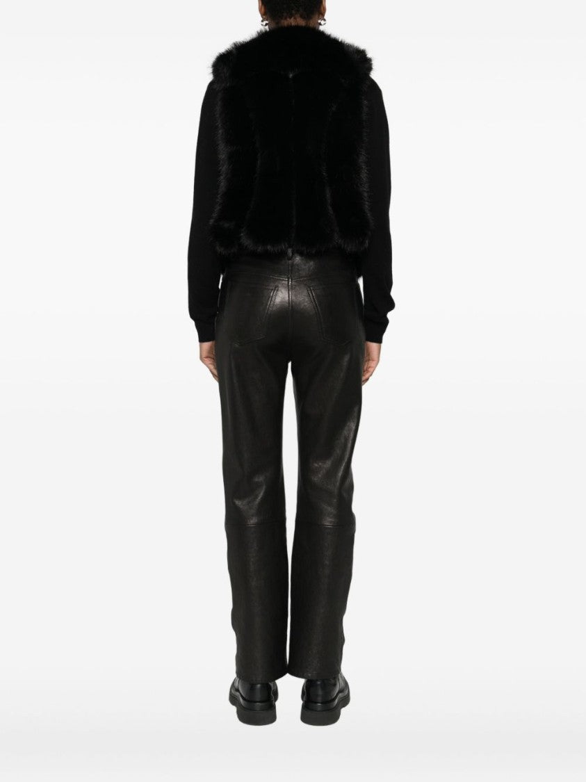 The Blugirl Giacconi Nero features a striking sleeveless design made from 100% polyester. Its plush texture and voluminous silhouette create an edgy yet sophisticated look. Leather strap details with metallic studs enhance its appeal, while a small leather patch pocket adds functionality.