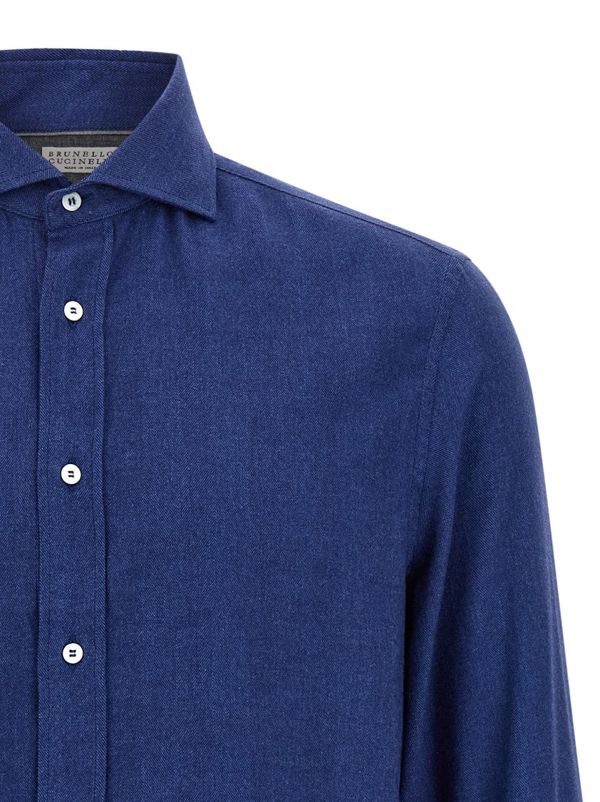 Brunello Cucinelli introduces a sophisticated herringbone-patterned shirt made from a luxurious cotton blend flannel, combining comfort with elegance. Featuring a classic collar, front button closure, and long cuffed sleeves, this shirt represents everyday sophistication. Its easy fit silhouette provides versatility, making it perfect for casual outings or more formal events.