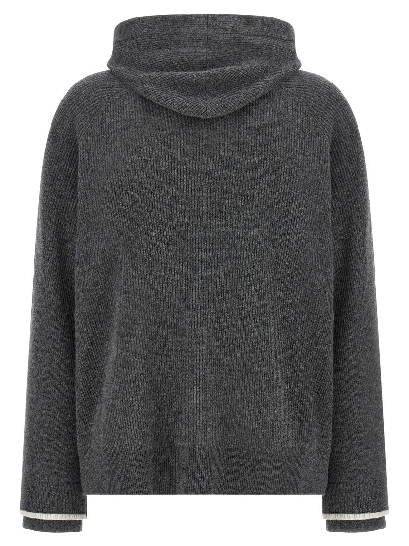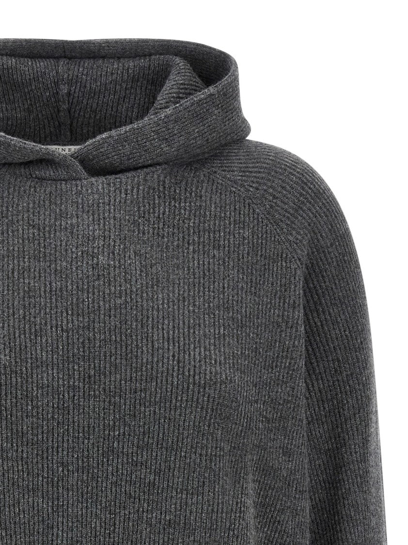 Experience the refined elegance of the Brunello Cucinelli English rib hooded sweater, a luxurious piece that combines comfort and style. Crafted from a blend of high-quality materials, this sweater features long sleeves with double-layer flared cuffs that are enhanced with Monile detail. Its relaxed fit and textured rib pattern make it an essential addition to any discerning woman's wardrobe.
