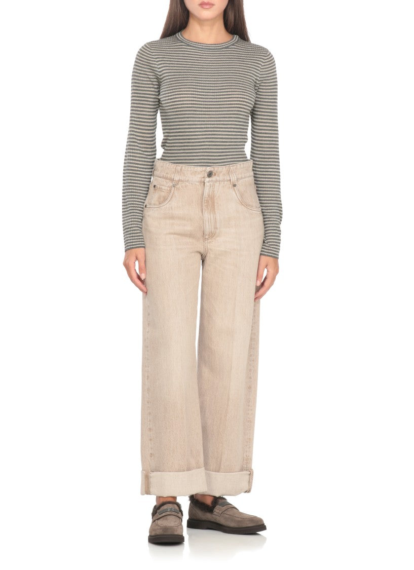 Brown suede leather loafers from Brunello Cucinelli showcase a blend of classic and contemporary style. The round toe design features elegant diamond-cut brass details, adding a refined touch. A plush lining provides exceptional comfort, while the sturdy flat sole ensures durability, making these loafers a versatile wardrobe staple.