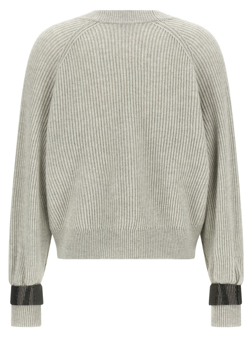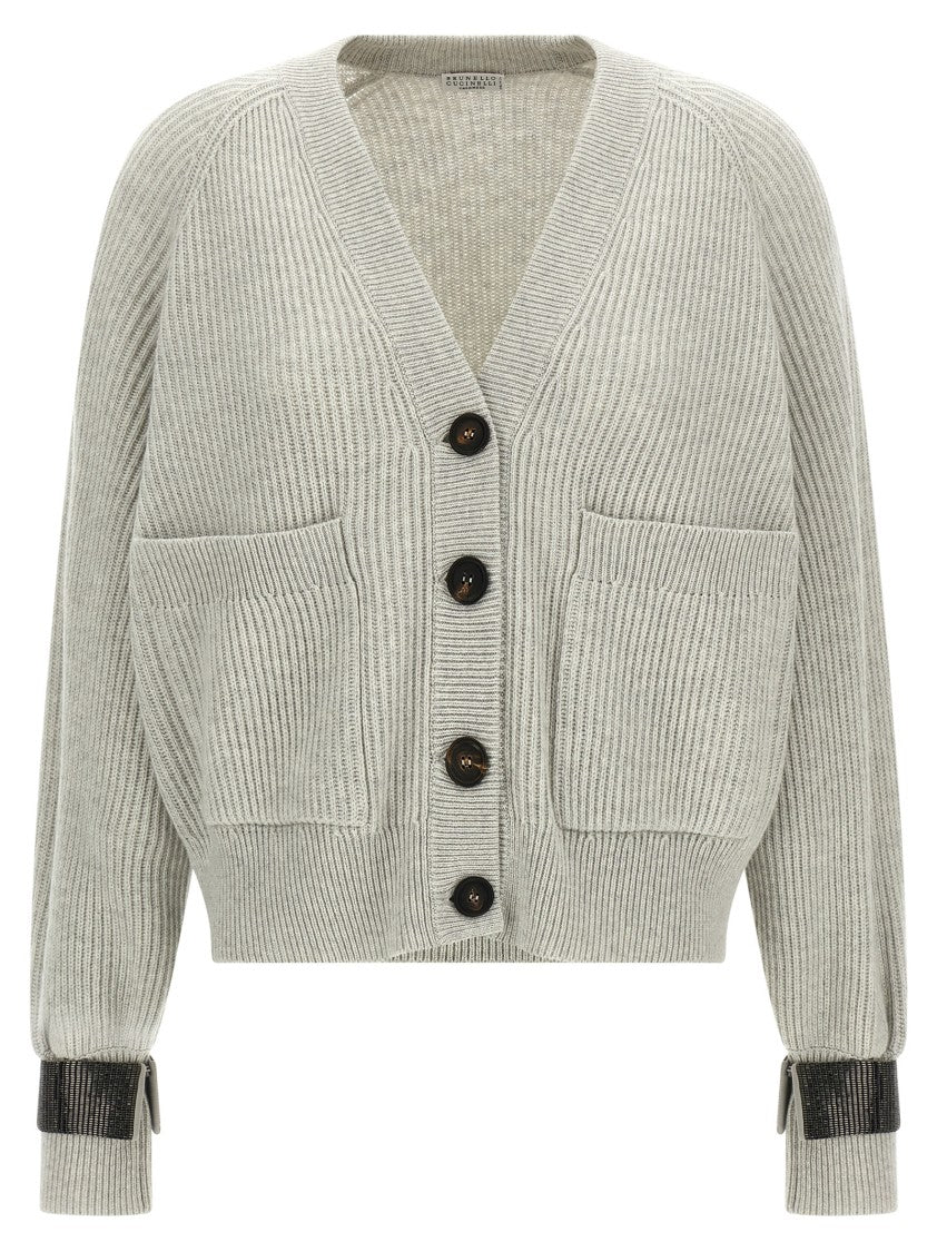This Refined Cashmere Cardigan From Brunello Cucinelli Is Crafted In Italy. The Soft English Rib Knit Includes Long Sleeves And Double-Layer Cuffs That Can Be Adorned With Removable Jewel Accents. A Chic V-Neckline, Front Button Closure, And Practical Pockets Enhance The Design, Blending Luxury With Functionality.