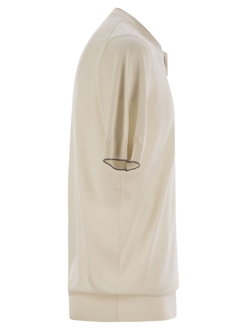 Brunello Cucinelli introduces a short-sleeved cotton jersey that embodies elegance and simplicity. This piece is made from high-quality natural yarn, providing a smooth and luxurious feel. It features a classic crew neck with contrasting trim, along with ribbed cuffs and hem that add to its refined look. The regular fit offers comfort around the bust and shoulders, while the lightweight cotton fabric drapes beautifully, making it a versatile wardrobe staple.