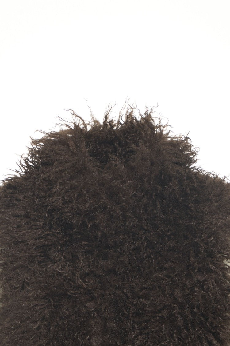 This oversized gilet is made from faux fur in a rich brown color, exuding warmth and sophistication. A high collar adds to its stylish look, and the snap button closure provides a secure fit. Perfect for layering, it blends luxury with casual elegance, featuring a soft texture ideal for cooler weather.