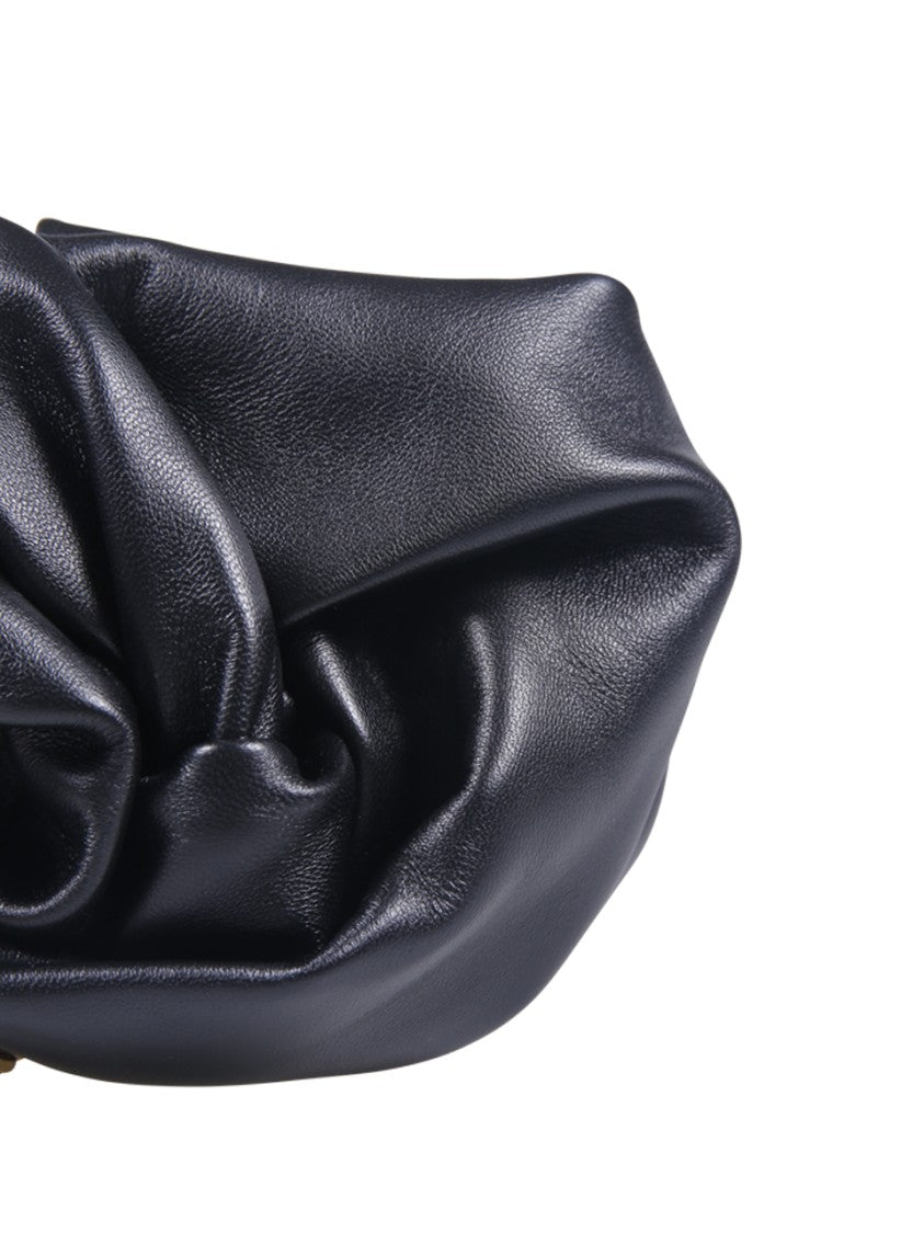 Luxurious lamb leather clutch from Burberry, featuring a soft, crumpled design. The sophisticated silhouette is enhanced by a striking gold chain strap, perfect for elevating any ensemble. This clutch embodies refined elegance for the modern woman.