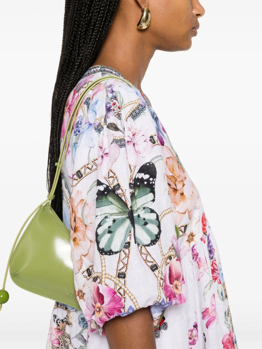 This enchanting mini dress from CAMILLA showcases a lively all-over floral print, enveloping the wearer in a cascade of vibrant hues. The relaxed silhouette is accentuated by puffed sleeves and a deep V-neckline adorned with sparkling crystal embellishments. Slip pockets on each side offer functionality, while a single rear button fastening seamlessly completes this exquisite design, perfect for embodying a bohemian spirit.