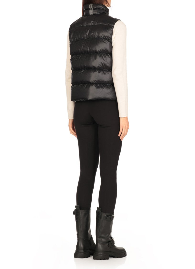 This Canada Goose quilted vest in black combines style and functionality. It features a high neckline and a double-slider zip for easy wear. The vest includes two side zip pockets and logoed patches on the front and back. Internal and adjustable drawstrings at the hem allow for a customized fit, making it suitable for casual and sporty occasions.