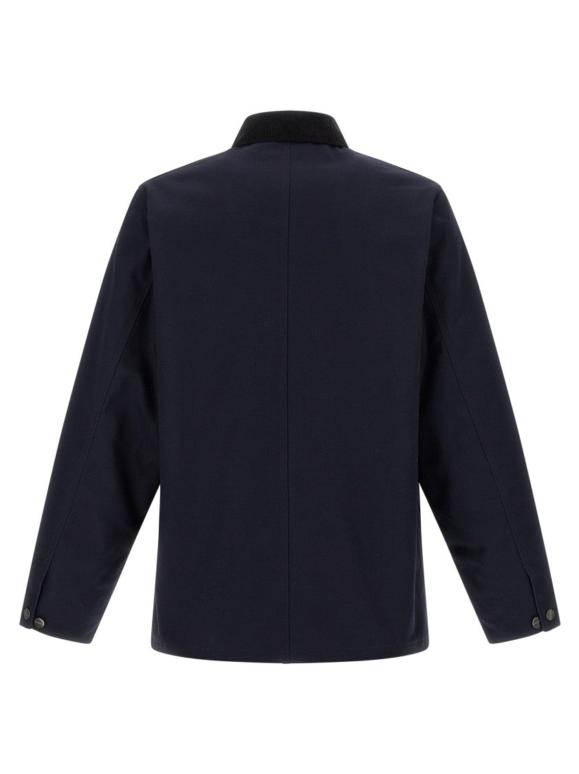 Carhartt WIP introduces the 'Michigan' jacket, constructed from durable 100% cotton canvas. It showcases a contrasting corduroy collar and a cozy wool lining for added warmth. The jacket includes a button closure, several front pockets, including a logo patch chest pocket, and cuffed sleeves that contribute to its boxy shape. This piece combines functionality and style, making it suitable for casual outings and work environments.