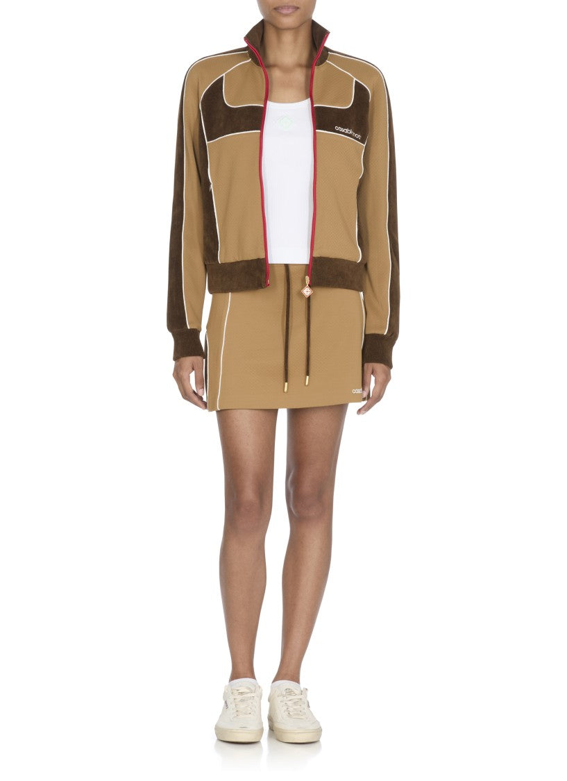 This white sleeveless top is made from premium Casablanca cotton, featuring a unique ribbed texture and a bold contrasting logo patch at the front. It combines comfort and style, making it a versatile addition to any casual or sporty outfit, achieving a relaxed yet polished look.