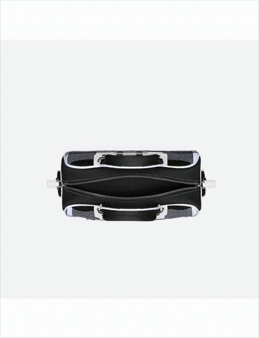 Christian Dior presents this structured tote bag, meticulously crafted in Italy. Showcasing a striking black and white checkered pattern, it features contrasting white accents, dual top handles, and a detachable shoulder strap for versatile carrying options. The front zip pocket embellished with a bold logo detail adds a statement touch, while a secure zip closure and rounded edges enhance its refined silhouette. The epitome of sophistication for modern lifestyles.