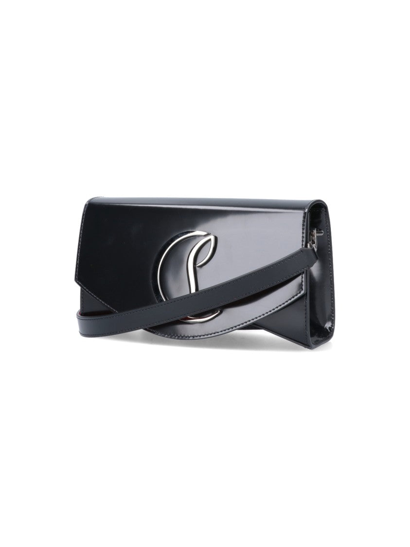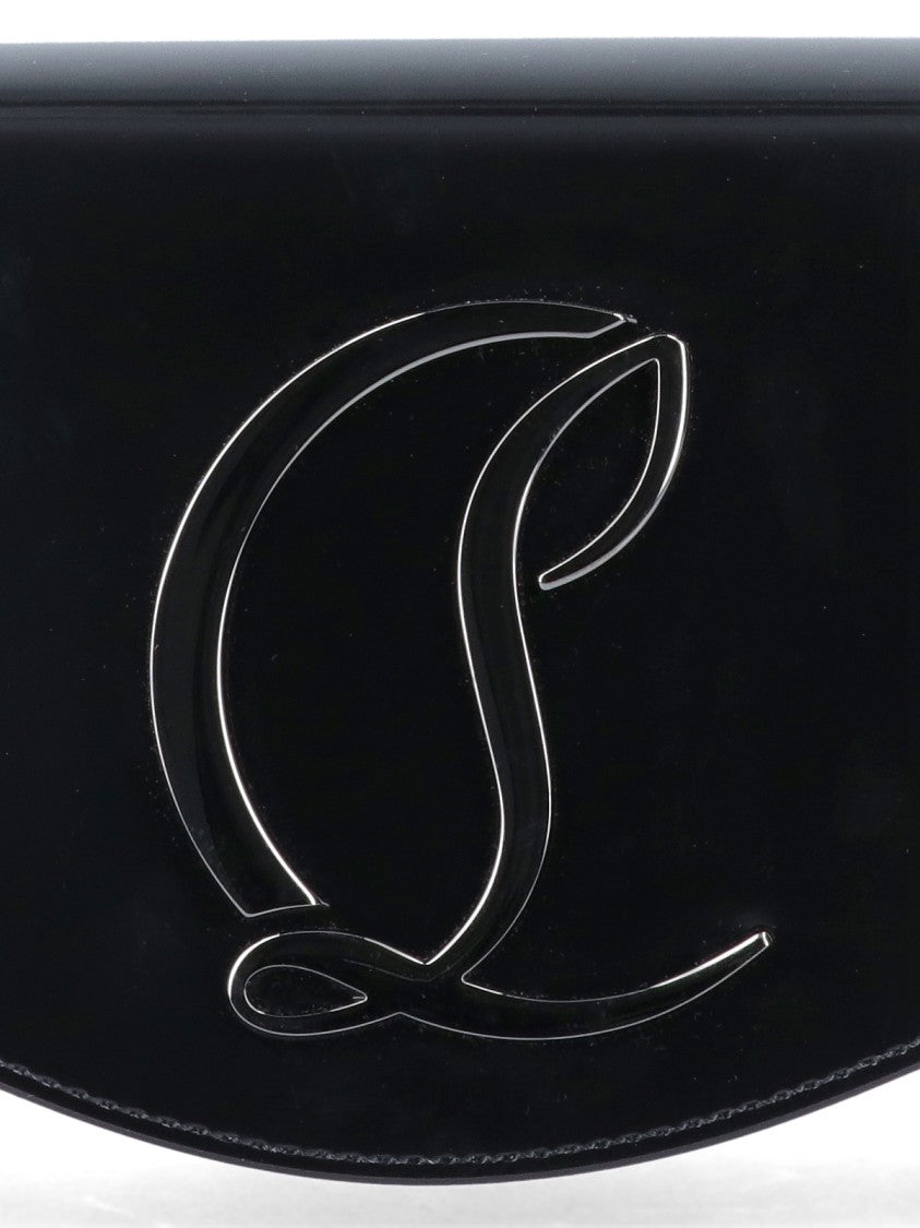 Christian Louboutin's crossbody bag features a glossy black patent leather exterior with a metallic logo detail. It offers a magnetic closure for easy access and includes an adjustable, removable shoulder strap. The main compartment is designed to hold everyday essentials, showcasing the brand's commitment to sophistication and versatility.