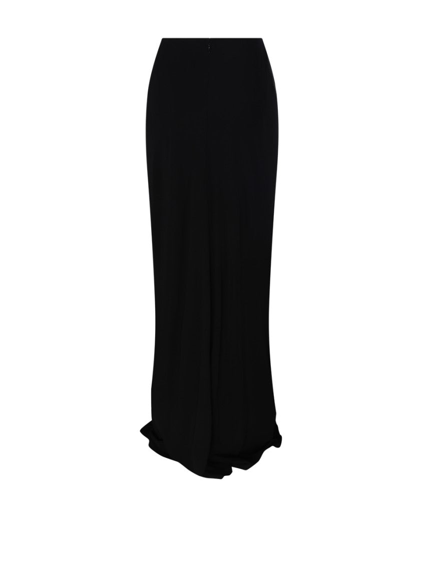 A stunning ruched maxi skirt made from 100% viscose. The soft, fluid fabric drapes elegantly to the floor, enhancing the silhouette. A decorative buckle at the waist adds a touch of sophistication, ideal for refined occasions.