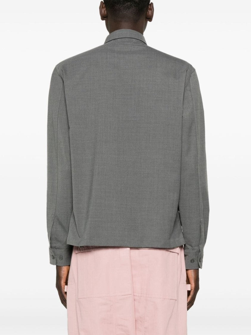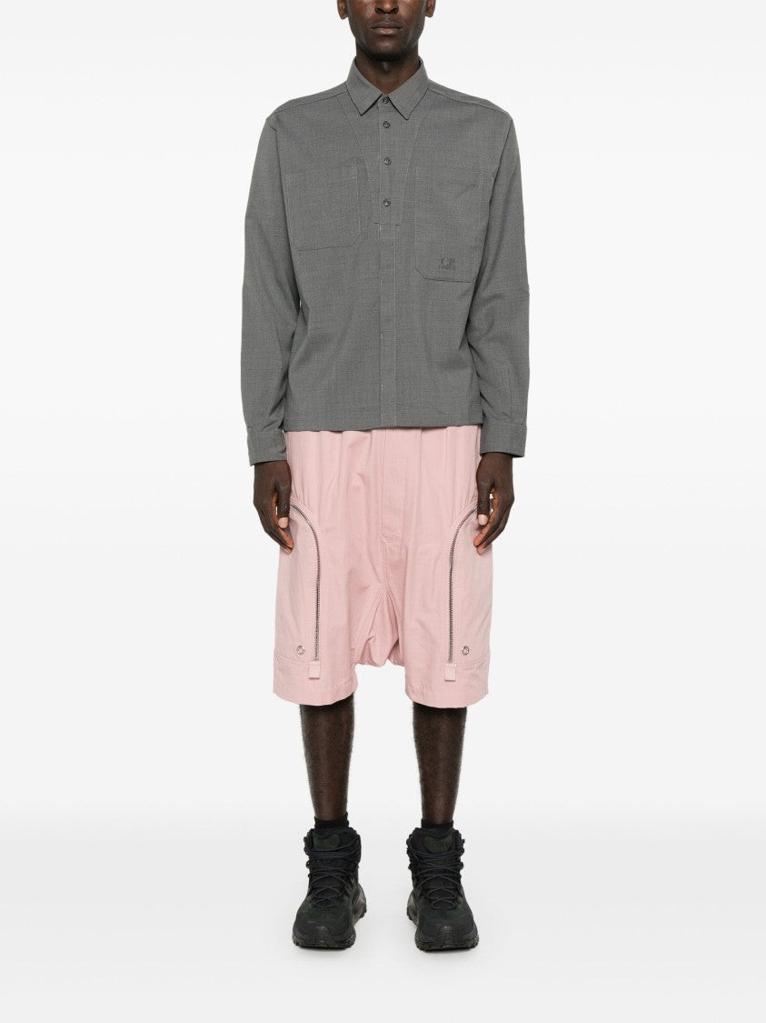 Medium grey mÃÂÂ ©lange C.P. Company shirt combines style and comfort. Tailored with a classic collar, long sleeves, and buttoned cuffs, this piece includes two chest patch pockets and a tonal embroidered logo. Short side slits and an authenticity QR code enhance its unique appeal.