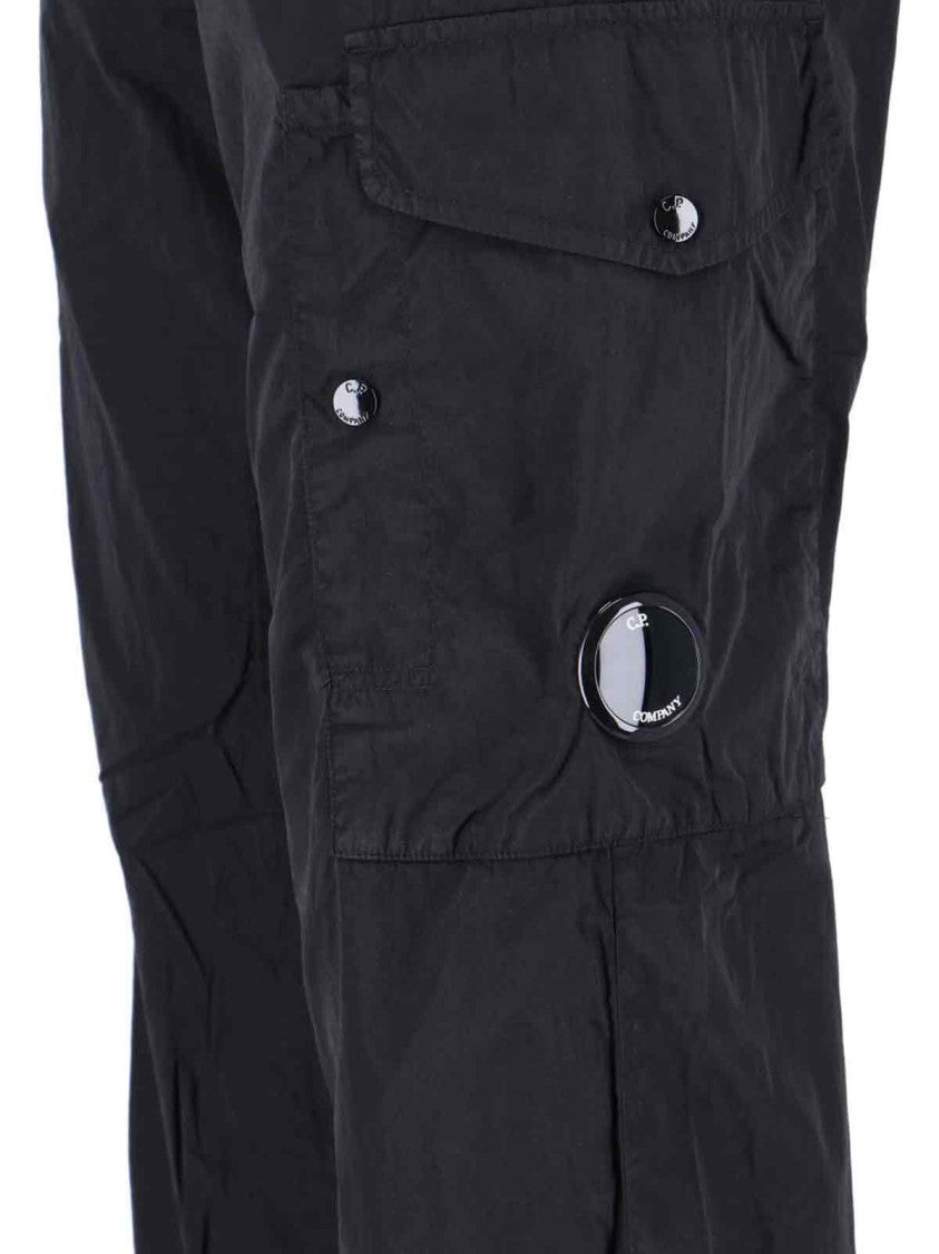 Straight-leg trousers from C.P. Company embody casual sophistication with a relaxed fit and elasticized waistband for comfort. Made from lightweight fabric, they include multiple pockets, such as cargo-style side pockets and a back pocket featuring a mini patch logo. The minimalist design and slightly crinkled texture contribute to their modern look.