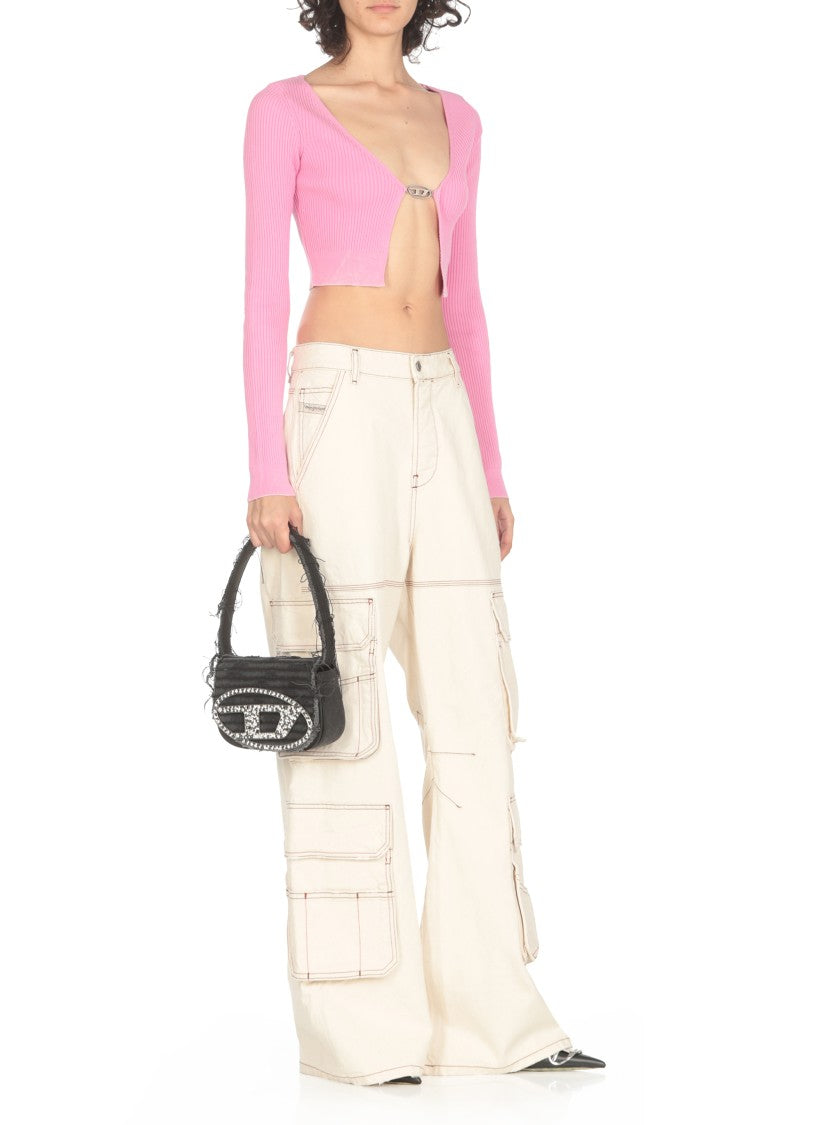 This Diesel Shoulder Bag Captivates With Its Edgy All-Over Ripped And Destroyed Design. A Striking Front Flap Secured By A Magnetic Button Complements A Prominent Strass 'D' Logo. Spacious Main Compartment, Internal Welt Pocket, And Front Pocket Provide Optimal Organization. The Removable And Adjustable Shoulder Strap Ensures Versatility, Making It The Perfect Accessory For A Casual Yet Bold Look.
