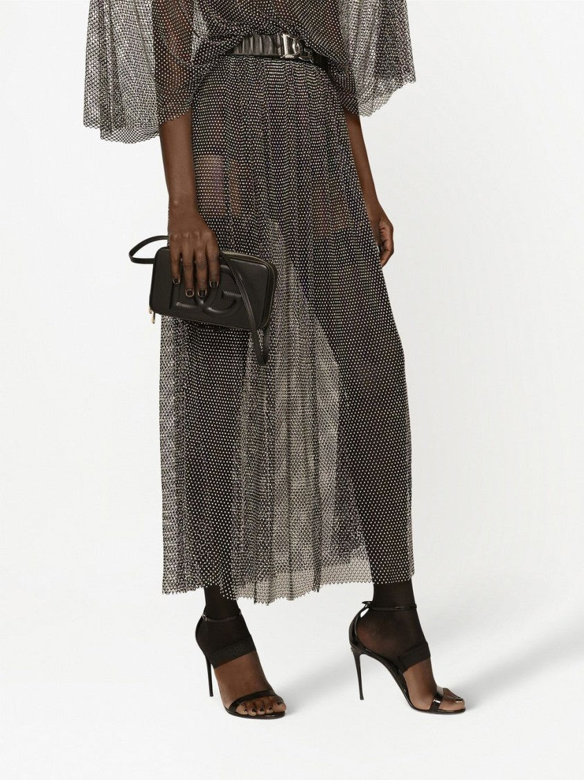 A luxurious shoulder bag crafted from premium black leather, showcasing an embossed logo that exudes sophistication. Features include a secure top zip closure and a practical gusseted pocket on the back for added functionality. An adjustable and removable shoulder strap allows for versatile styling, while gold hardware beautifully accents the overall design, making this piece a statement accessory for any occasion.
