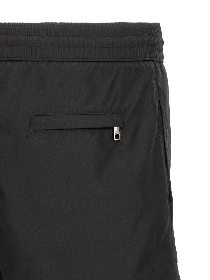 This short swimsuit from Dolce & Gabbana combines style and functionality for the discerning man. Made in Italy, it showcases a sleek silhouette with a polished front metal logo. An elastic waistband with an adjustable drawstring provides a personalized fit, while practical pockets and inner briefs enhance comfort and utility. Ideal for a day by the pool or beach, it fuses sporty and casual aesthetics.