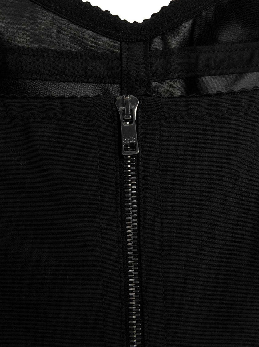Dolce & Gabbana presents a captivating midi corsetry dress, elegantly designed with a sweetheart neckline and a remarkable structured silhouette. A luxurious blend of powernet and lace embraces the figure flawlessly, accentuating the waist with finesse. Adjustable straps and a discreet back zipper closure epitomize refined sophistication.