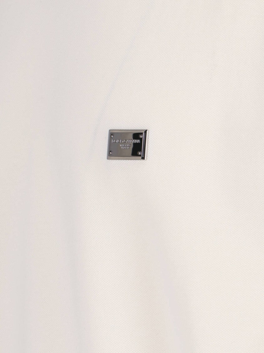 Refined casualwear is embodied in this panna cotton T-shirt from Dolce & Gabbana. The classic short-sleeve design includes a round neckline and a straight hem. A contrasting metal plaque on the chest, engraved with the brand's logo, enhances its minimalist aesthetic, adding sophistication to any wardrobe.
