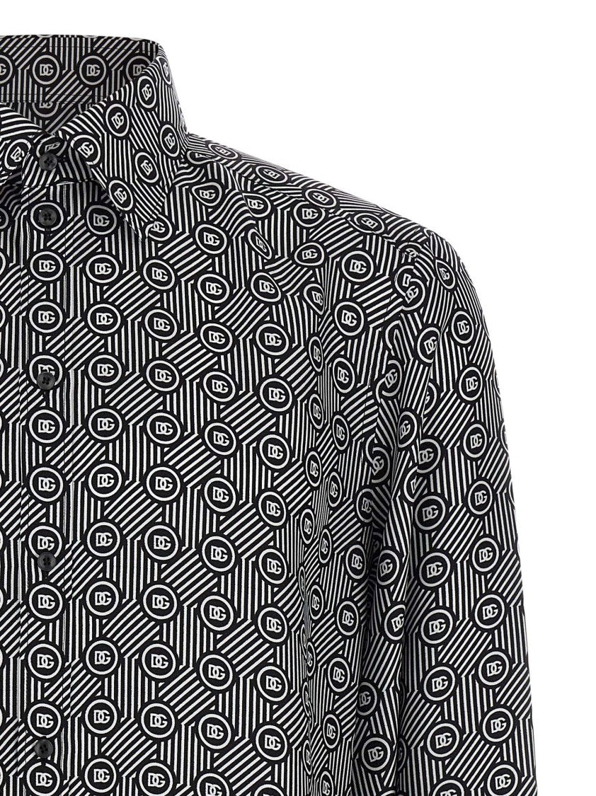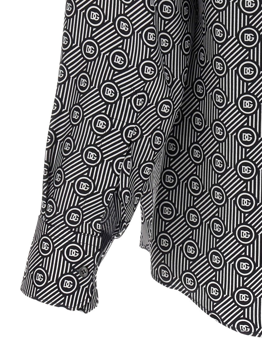 This silk shirt from Dolce & Gabbana features an all-over logo print combined with geometric patterns. A classic collar and front button closure enhance its appeal, while long sleeves with cufflinks add a touch of elegance. Crafted in Italy, it offers a true-to-size fit for comfort and sophistication.