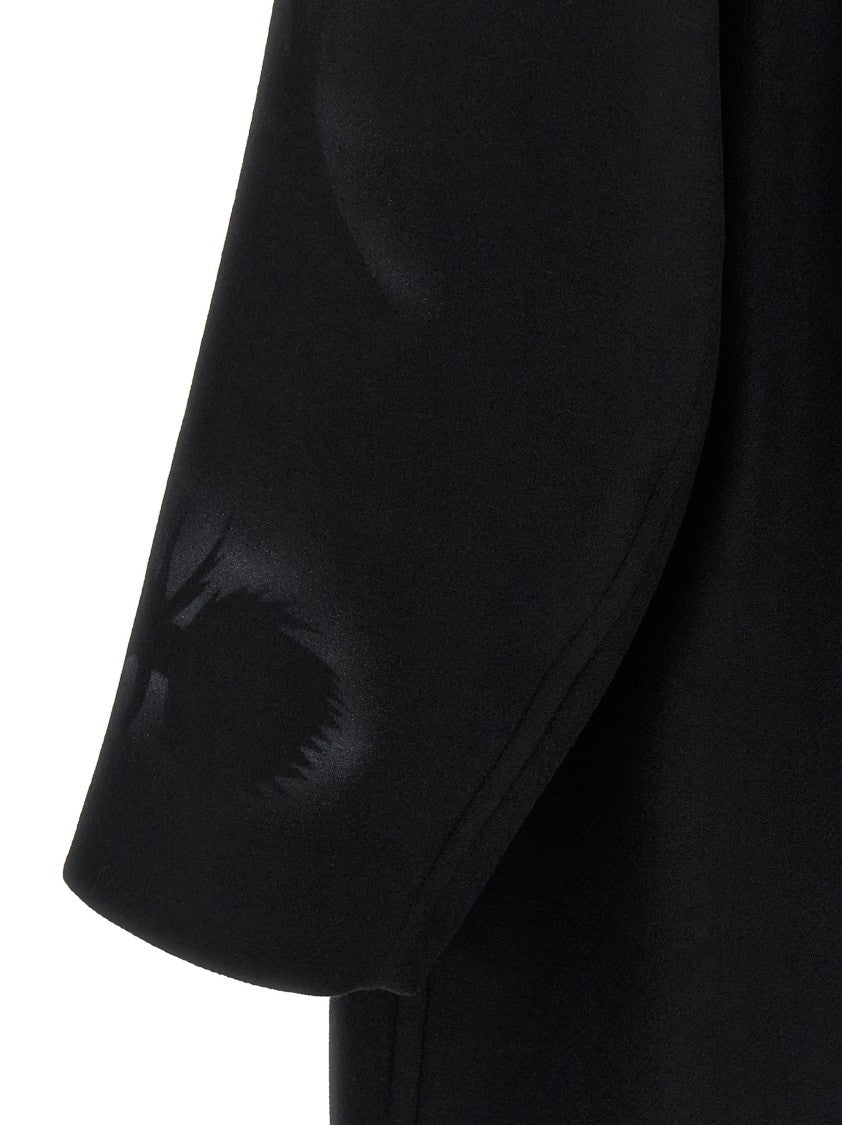 The oversized double-breasted coat from Dries Van Noten exemplifies luxurious craftsmanship with a wool blend that offers both warmth and elegance. A V-neckline with peak lapels and button closure contributes to its sophisticated look. The subtle tone-on-tone stencil effect 'Peonia' print adds a unique touch, while dual pockets enhance its practicality. A perfect choice for the modern gentleman looking for a standout piece.