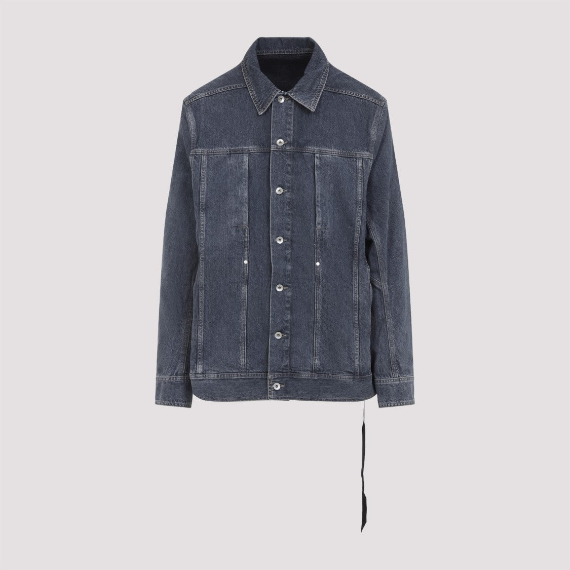 Drkshdw By Rick Owens introduces a washed denim jacket that showcases modern artistry and effortless style. Made from 100% cotton, it includes a classic collar and button-down front, enhanced by vertical seam detailing. The long sleeves feature buttoned cuffs, and a distinctive black fabric strap hangs from the hem, adding a unique flair. This versatile jacket is perfect for both casual and upscale occasions, embodying contemporary fashion.