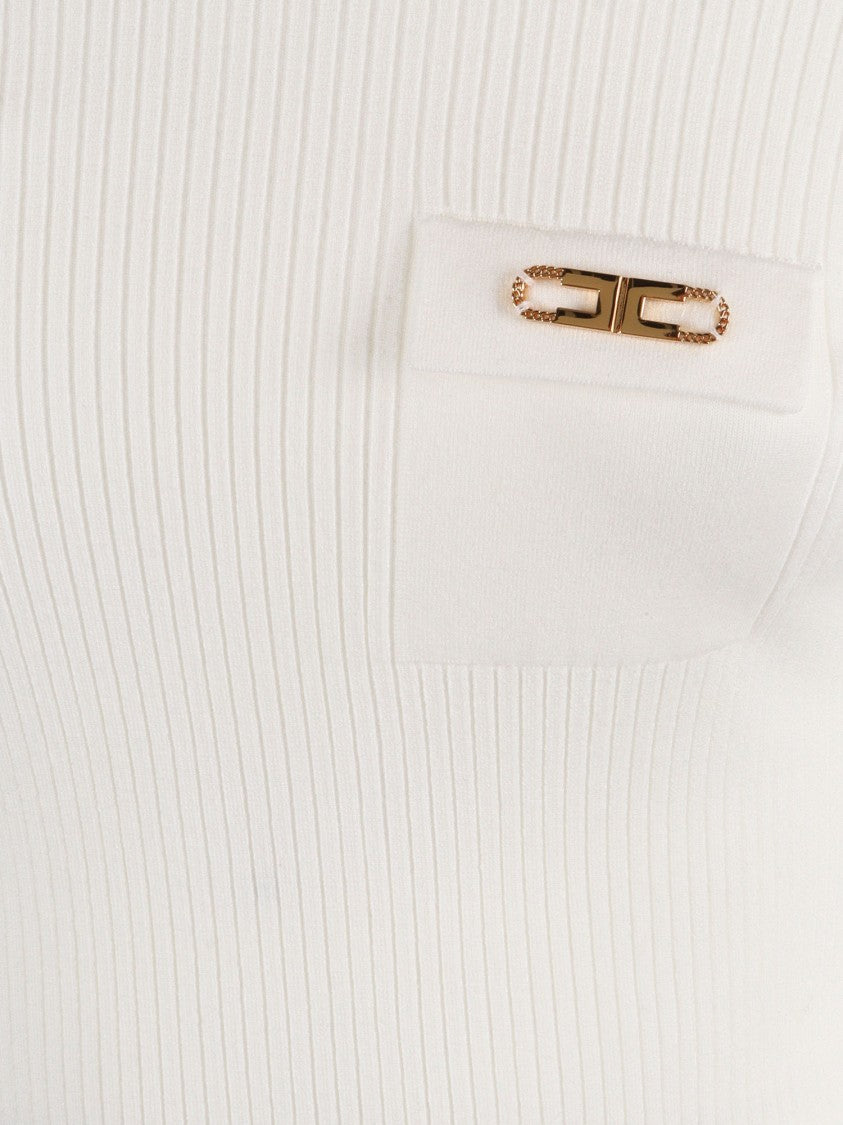 The Elisabetta Franchi finely knit long-sleeve top is a staple piece that embodies understated elegance. Crafted from a luxurious blend of lyocell, polyamide, and silk, it features a fitted silhouette that enhances the wearer's form. The round neckline and smooth texture provide a contemporary touch, making it ideal for versatile styling. A must-have for the discerning wardrobe.