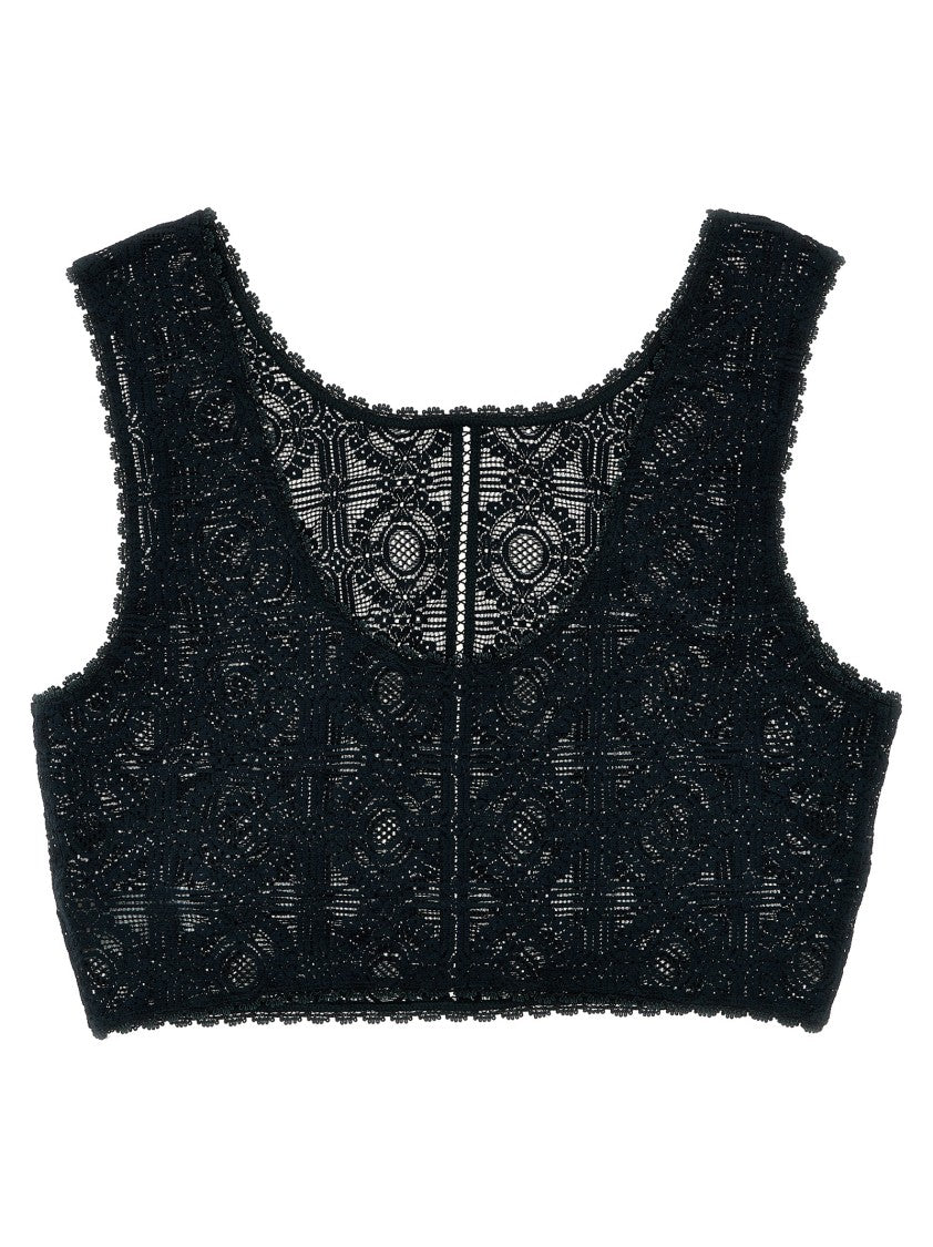 The 'Galerie Tapi' bra by Eres showcases intricate craftsmanship with a delicate lace design and textured finish. A beautifully sculpted scoop neckline and wide straps provide comfort, while lace detailing enhances elegance. A seamless lace back contributes to a refined silhouette, making it a sophisticated lingerie choice.