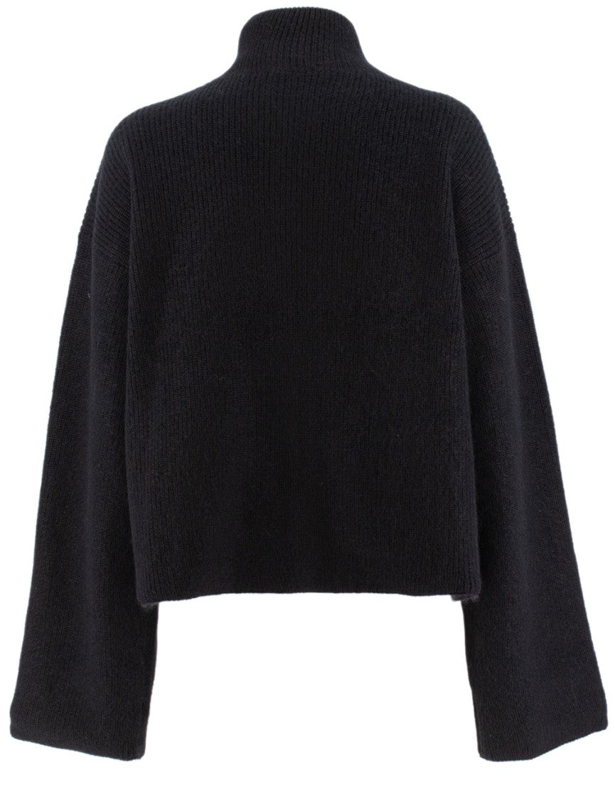 Fabiana Filippi offers a reversible jacket that combines a textured knit side with a smooth fabric side. This stylish piece includes a double-slider gold zipper, a contemporary high collar, and long wide sleeves, making it a perfect layering choice for any wardrobe.