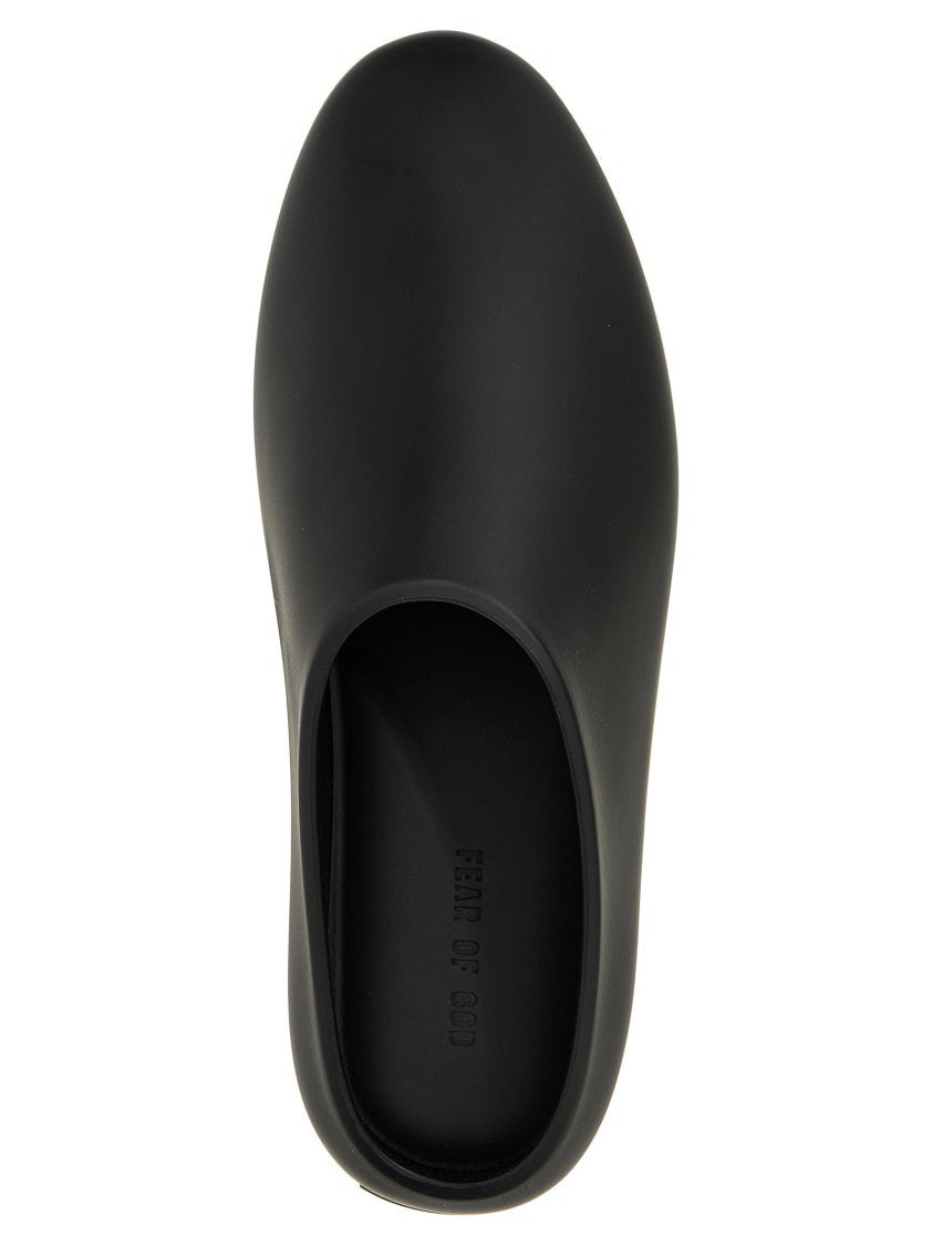 The California - Collection 8 sabots from FEAR OF GOD feature a minimalist aesthetic and a pointed toe design. Crafted from extrabounce foam, these shoes ensure exceptional comfort, complemented by a removable leather insole for added luxury. A subtle rubberized logo label on the heel enhances the sophisticated silhouette. Made in Italy, these versatile sabots capture the essence of contemporary casual wear.