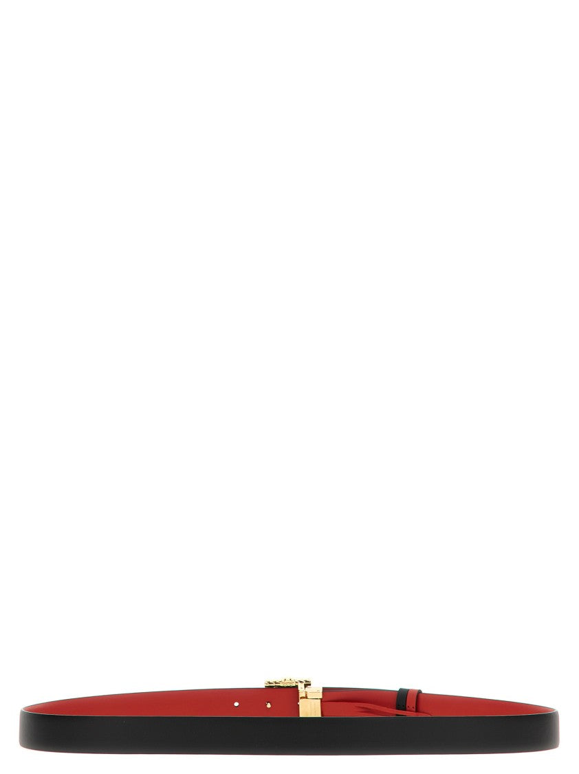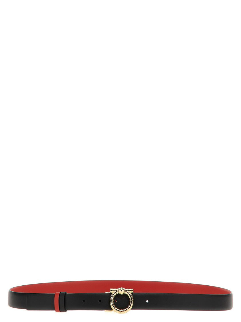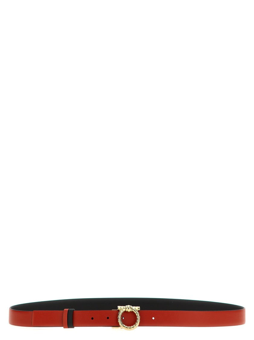 Ferragamo introduces a reversible belt that combines luxury with versatility. This accessory showcases a vibrant red side and a classic black side, making it ideal for various occasions. The sleek hook buckle closure enhances its sophisticated appeal, suitable for both elegant and casual outfits.