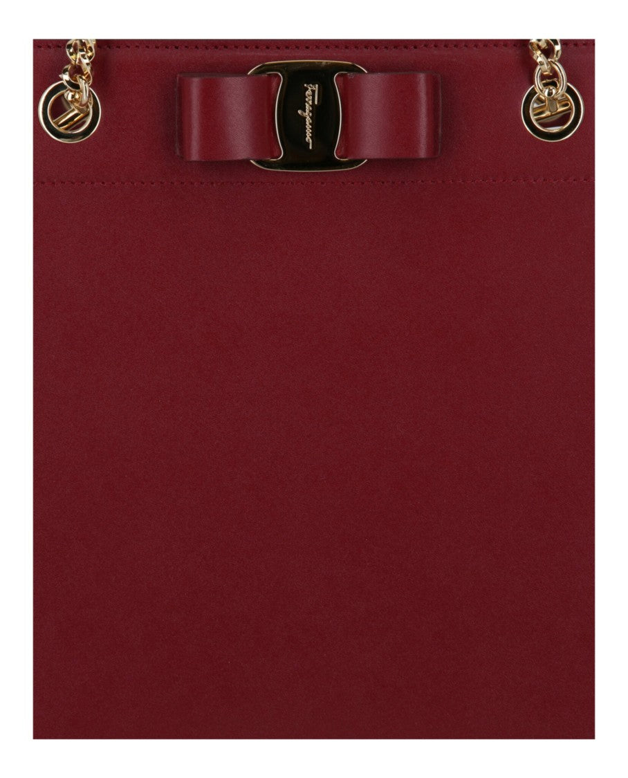 The Vara Bow Smooth Leather Tote by Ferragamo is a luxurious accessory made from 100% Italian calfskin leather. Its smooth exterior features the iconic Vara Bow accent, while the spacious interior is designed for optimal organization with two zip pockets and three side wall pockets. The open-top design and dual chain-link shoulder straps contribute to a refined silhouette, making it a sophisticated choice for any occasion.