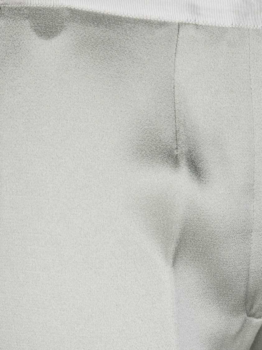 The epitome of sophistication is captured in these high-waisted pants by Forte Forte, showcasing a radiant allure through shiny satin fabric. A wide-leg silhouette is elegantly structured with refined front and back creases, complemented by a clean waistband with subtle pleats at the front for a seamless look. The lustrous finish of the silver fabric beautifully reflects light, making these pants ideal for evening events and upscale gatherings.