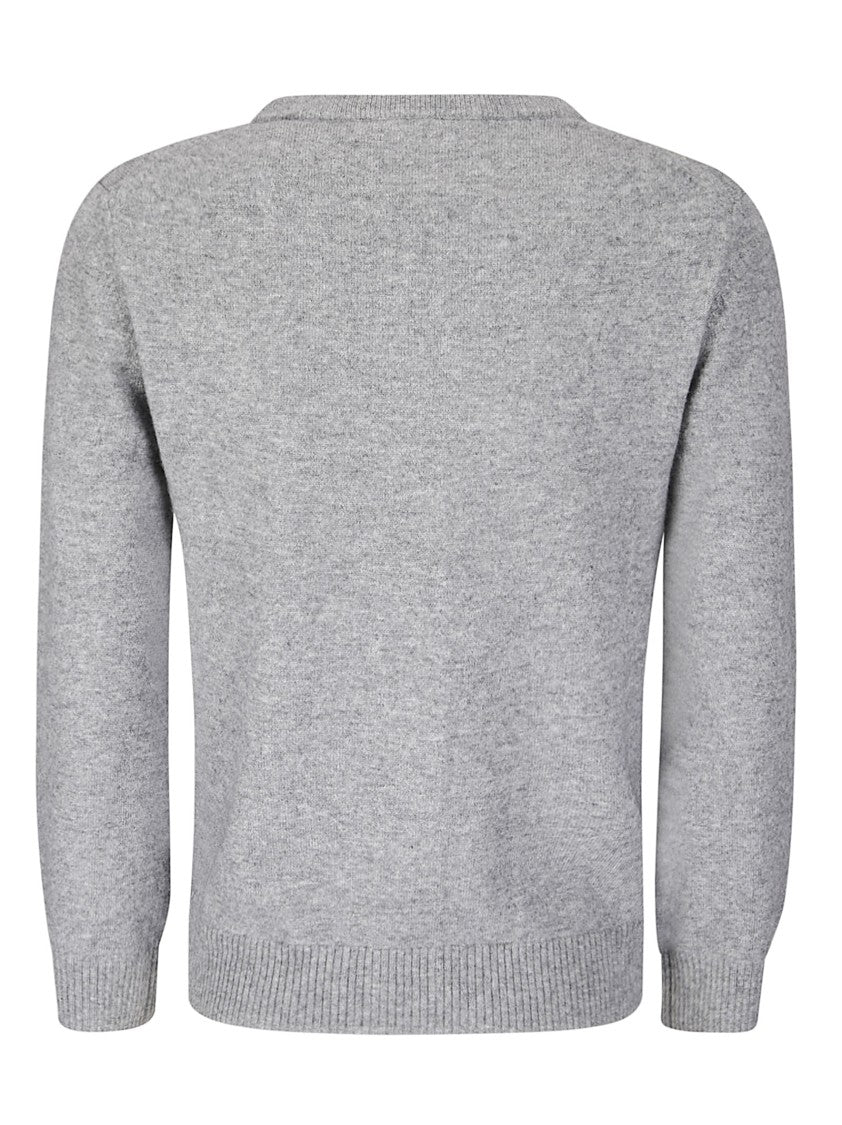 This argyle knit cardigan from Ganni features a vibrant color palette on a refined grey base. Silver buttons add a touch of elegance, while two functional front pockets and an embroidered logo enhance its practicality. The luxurious wool-cashmere blend ensures warmth and softness, making it a stylish choice for any wardrobe.