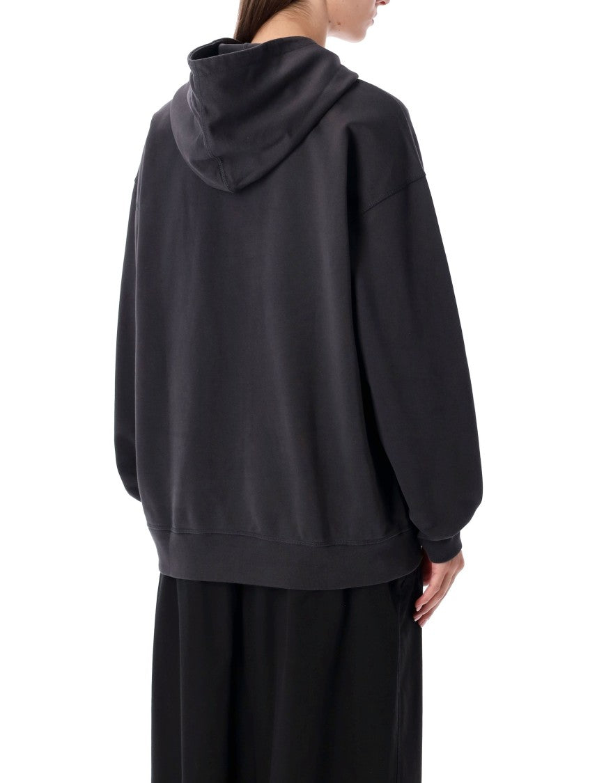 The Puppy-Graphic Oversized Hoodie from Ganni is a perfect blend of casual urban style and comfort. Made from 100% organic cotton, it features dropped shoulders and ribbed cuffs, ensuring a relaxed fit that exudes effortless chic. The playful puppy graphic and brand logo on the front add a unique charm, making it an essential piece for any casual wardrobe. Ideal for those who appreciate a contemporary streetwear aesthetic.