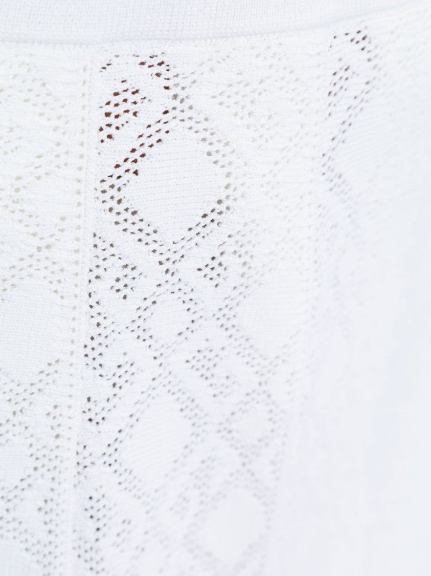 A pleated pointelle knit skirt from Givenchy highlights intricate craftsmanship with a delicate pattern. The design includes a ribbed waistband for comfort and a concealed side zip for a refined touch. Its flowing silhouette allows for easy movement, perfect for various occasions.