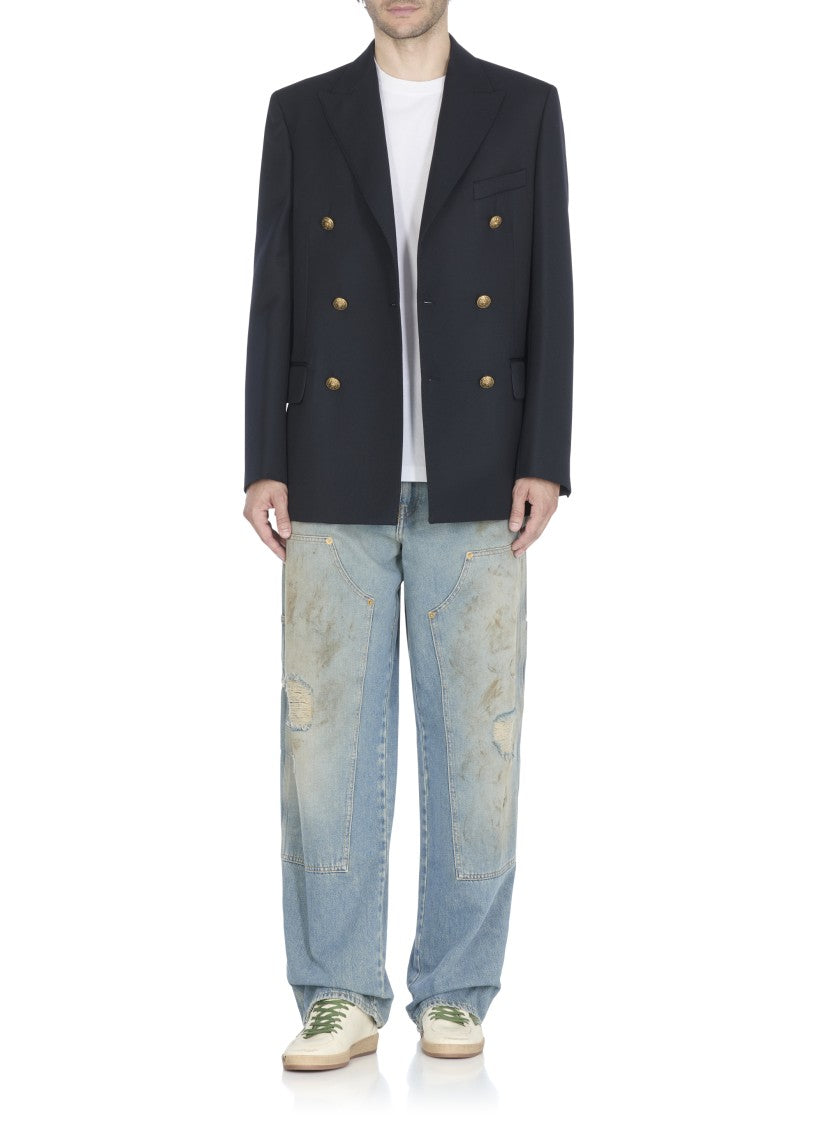 Golden Goose showcases streetwear sophistication with these ivory leather sneakers. They feature a round toe, breathable details, a logoed tongue, and a contrasting color iconic star on the side. The upper heel adds a striking touch, while the front laces ensure a secure fit. The rubber sole, embellished with unique lettering, combines style and durability, making these sneakers a must-have for any modern wardrobe.
