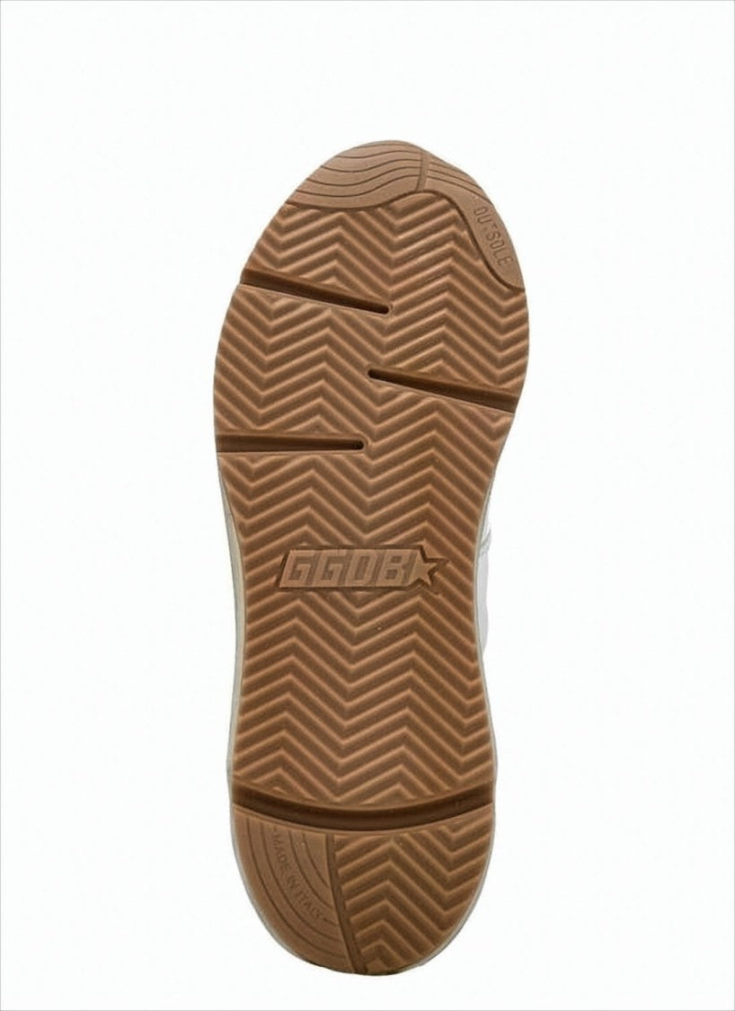 Golden Goose presents a pair of sneakers that redefine casual luxury. Crafted in Italy, these shoes feature a white leather upper with a unique distressed finish and a striking red star detail on the side. The vintage aesthetic is further enhanced by beige suede accents on the toe and a contrasting red heel tab, while the textured rubber sole in a warm beige tone completes the look.