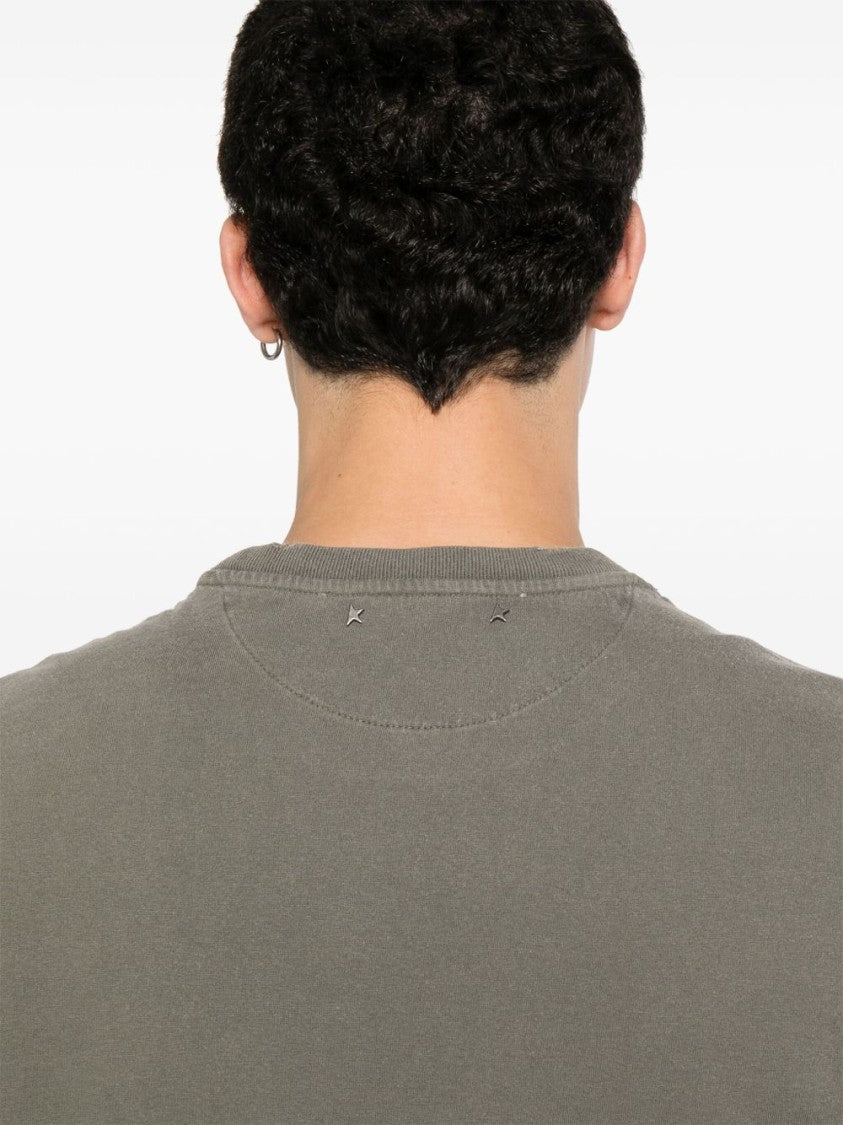 Golden Goose introduces a Distressed Cotton Jersey T-Shirt, perfect for modern streetwear enthusiasts. This t-shirt is made from soft cotton jersey and features a unique distressed texture for added character. It includes a ribbed crew neck and short sleeves for a relaxed fit. The striking logo print on the front and a subtle logo plaque on the rear highlight its stylish design. A straight hem enhances its versatility, making it suitable for casual outings.